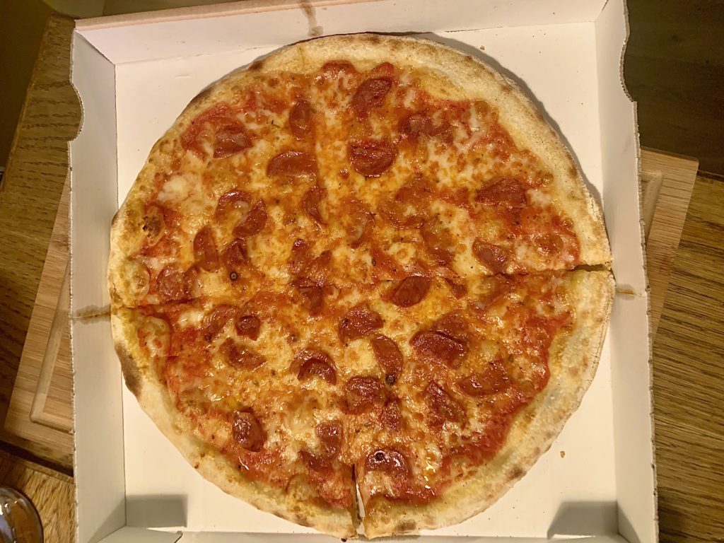 Auf der Karte findet man zudem noch sechs Pizza-Sorten: Margherita; Funghi; Prosciutto e Funghi; Calabrese; Rucola, Tomaten und Parmesan und Napoli (Sardellen, Zwiebeln, Kapern). Caesar Salat gibt es auch, je nach Bedarf mit oder ohne panierter Hühnchenbrust.